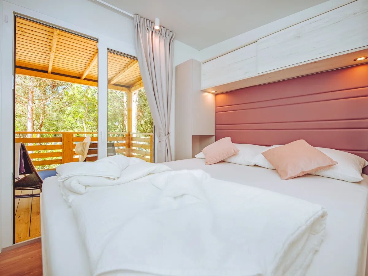 The Comfort Plus Lounge mobile home has 3 bedrooms: one with a double bed and the children's bedrooms each have 2 single beds. The sofa in the lounge can also be folded out into a bed (1.90 x 0.80). In the master bedroom there is an extra air conditioning unit. One bed rack is standard, which you can slide under the mattress to prevent your toddler from rolling out of bed. There are mosquito nets in the children's bedroom at the back of the mobile home.