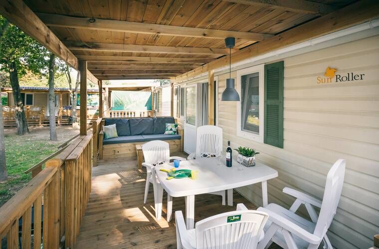 You won’t find a more luxurious mobile home on the market! The most luxurious glamping mobile home by Roan is the Supreme Plus Lounge – a 3-bedroom mobile home with a spacious covered decking, large lounge sofa, and an extra sun deck. This glamping mobile home even has a dishwasher. It truly brings your camping holiday to a whole new level! Did you know that this accommodation includes bed linen, shower towels, and final cleaning?