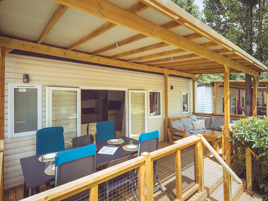 This deluxe model comes with a 19 m2 luxurious covered wooden decking plus a comfortable lounge sofa. Did you know that this accommodation even has an outdoor kitchen?