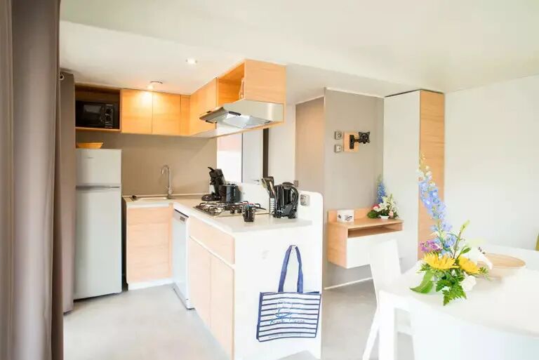 Aircon Decking Dishwasher Linen incl. Final Cleaning 2 bathrooms WiFi In high season only arrival/departure on Saturdays possibleThe Supreme is equipped with a very complete inventory as well as a luxurious semi-covered decking of no less than 15 m2. Did you know that this accommodation includes WiFi, bed linen, towels and a final cleaning?